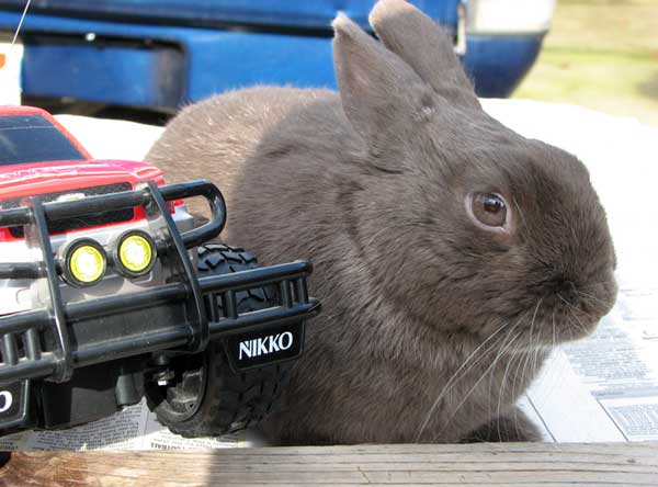 Ziggy & Muffin (the lop) are a devoted pair of rabbits. They are fun to watch interact. Muffin loves petting. |