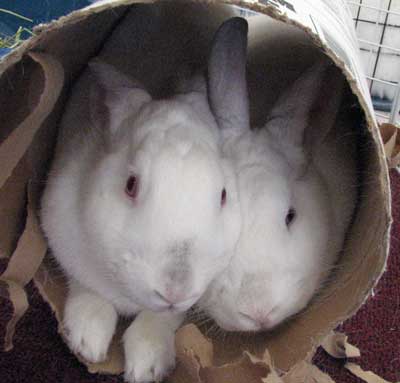 Ruby and Logan are bonded brother & sister. They love to explore all the time & are very curious. hey snuggle and groom each other when they are not playing. They would love to have their own room some day in a forever home. Appreciate Big White Bunnies Here! They enjoy each other's company. |